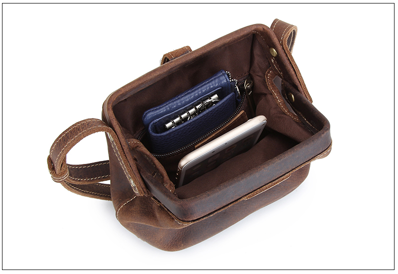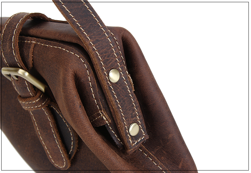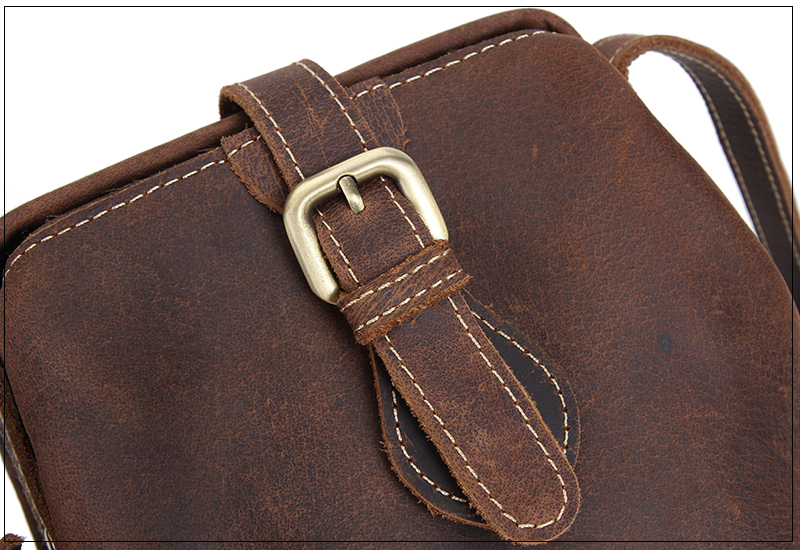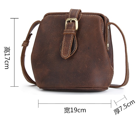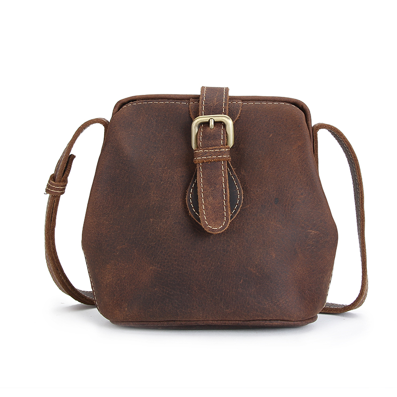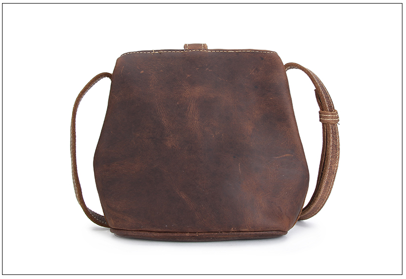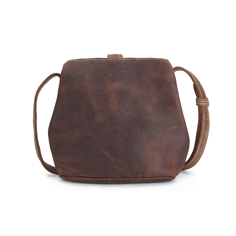 疯马纹头层真牛皮单肩包